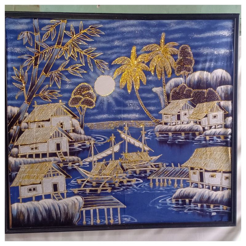 Jual Lukisan Batik Pemandangan Perahu Ukuran 1m X 90 Indonesia Shopee Indonesia